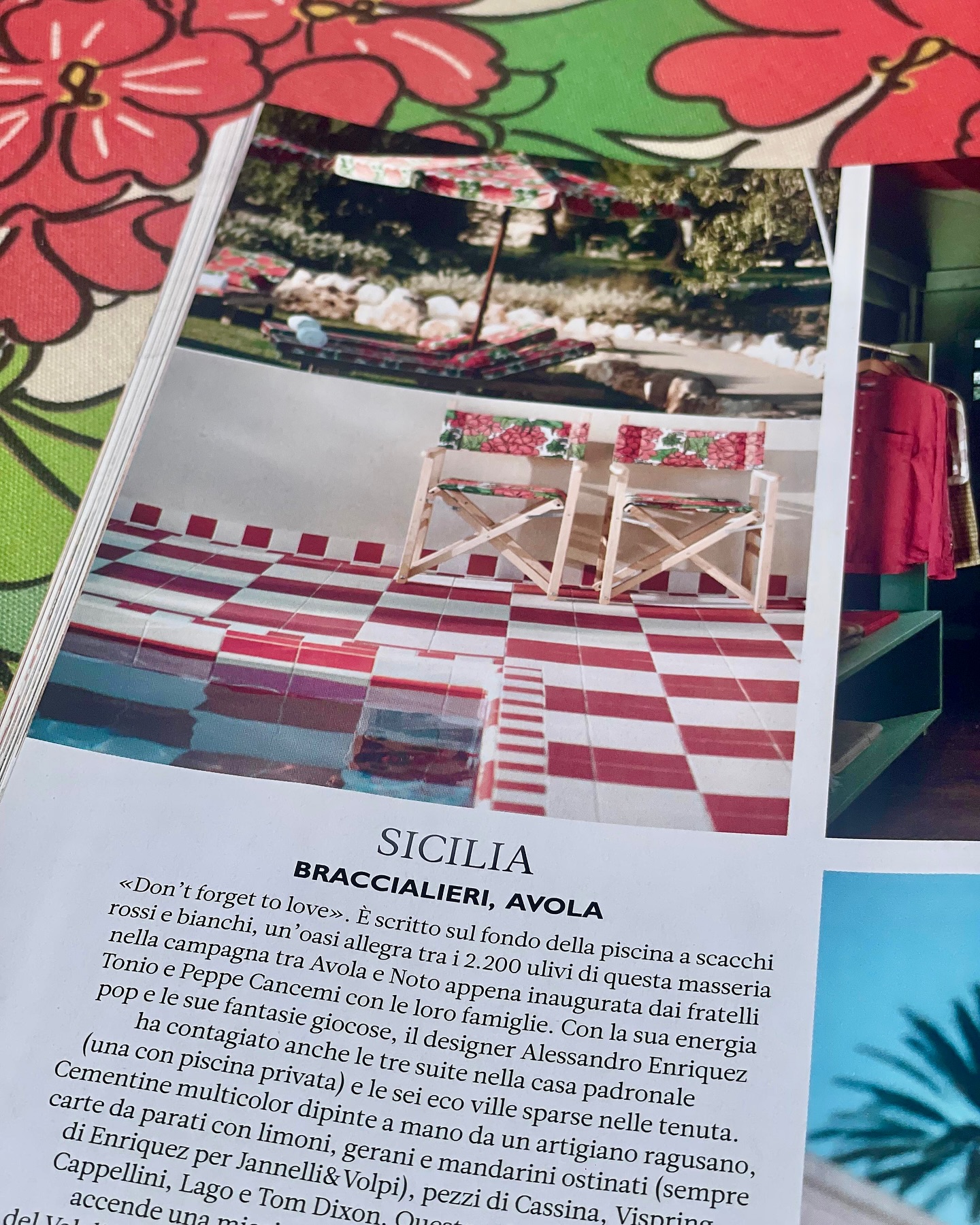 Il design di Enriquez caratterizza le tre suite nella casa padronale (una con piscina privata) e le sei eco-ville sparse nella tenuta. L’arredamento è un mix curato di pezzi di design italiano di marchi come Cassina, Cappellini, Lago Design e Tom Dixon, abbinati a carte da parati esclusive con limoni e gerani, e a cementine dipinte a mano.