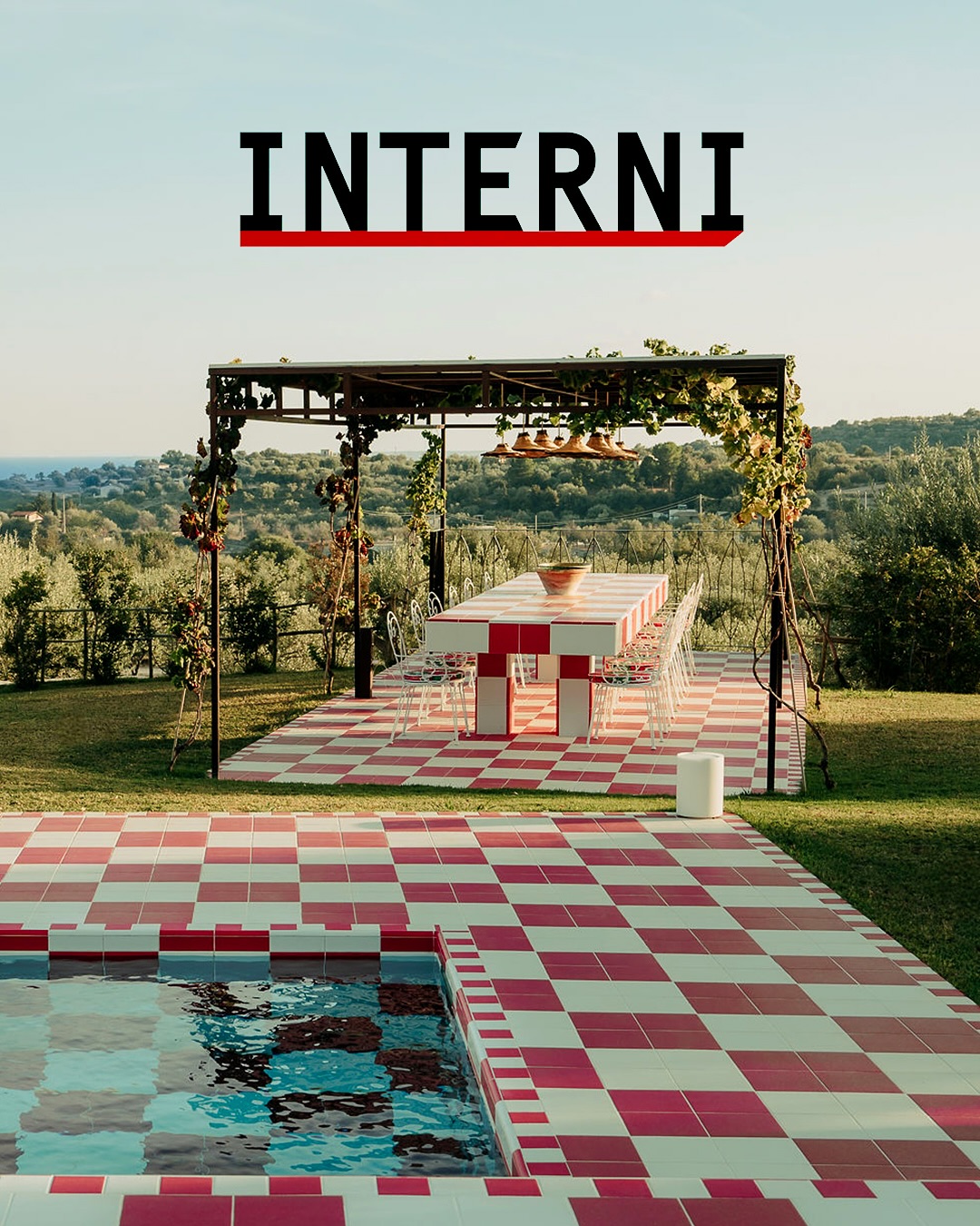 L’elemento più distintivo del resort è la piscina a scacchi rossi e bianchi, sul cui fondo è inciso il messaggio: “Don’t forget to love”. Questo motivo si ispira ai pavimenti delle case tradizionali, creando un ponte tra memoria e contemporaneità.
